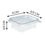 3– ظرف سالادی شفاف: جنس این نوع ظروف یکبار مصرف، پلاستیکی با ظاهری شفاف است. به طوری که محتویات سالاد کاملا قابل دیدن است. در این نوع ظروف به راحتی می‌توانید انواع سالاد و سبزیجات را همراه مخلفاتش مشاهده نمایید.